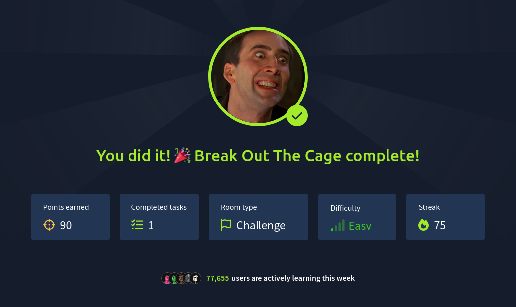 TryHackMe: Break out the cage — Writeup | 04 October 2025
