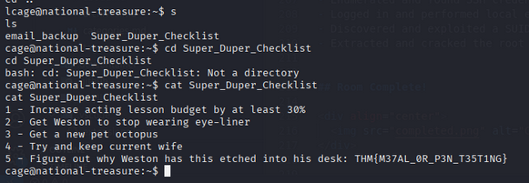 Inside the box, enumeration revealed Super_Duper_Checklist containing Task 2 token: