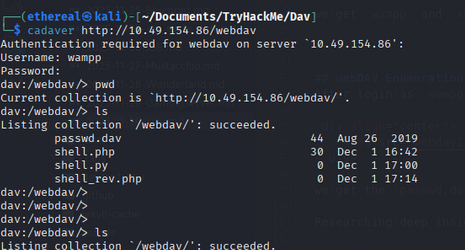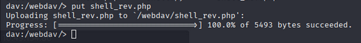 So we can use cadaver to interact with webDAV. and add or put a file to the server. let’s add a reverse shell using put command:
