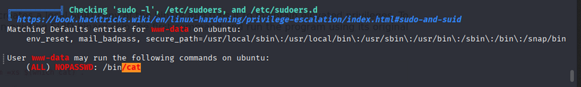 we get the great privilege escalation. that is we can use /bin/cat command as a root.