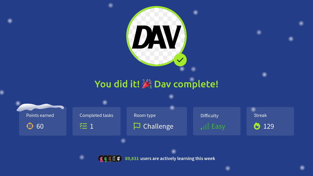 Dav - An “easy” boot-to-root machine on TryHackMe themed for the FIT / BSides Guatemala CTF, designed to teach WebDAV exploitation and basic privilege escalation.