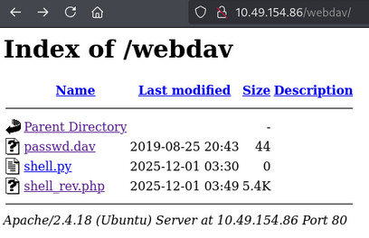 This room teaches you how to discover and exploit a vulnerable WebDAV service to gain initial access. It’s a simple, beginner-friendly boot-to-root challenge that also covers basic privilege escalation.