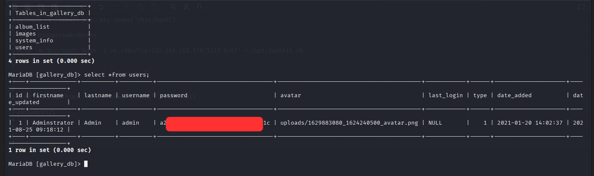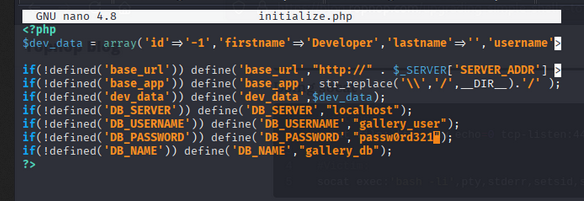 To find the hash of the admin user. We can see the config.php file in gallery directory.