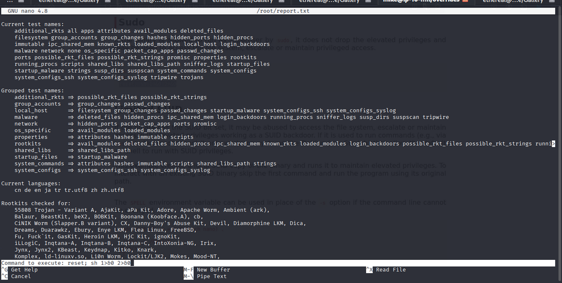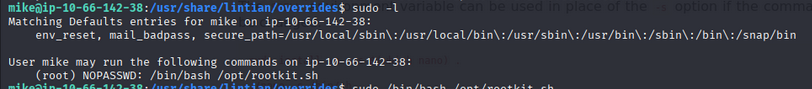 /bin/bash /opt/rootkit.shto escalate privileges. - We can run