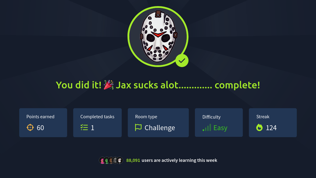 TryHackMe: Jax sucks alot CTF — Writeup | 25 November 2025