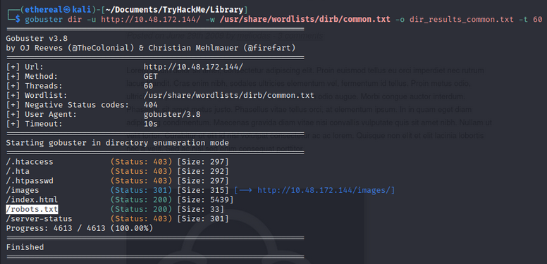 gobuster dir -u http://<TARGET_IP>/ -w /usr/share/wordlists/dirb/common.txt -o gobuster.txt