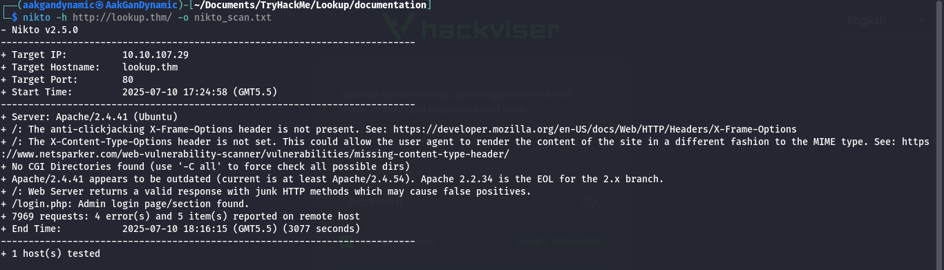 nikto -h http://lookup.thm/ -o nikto_scan.txt