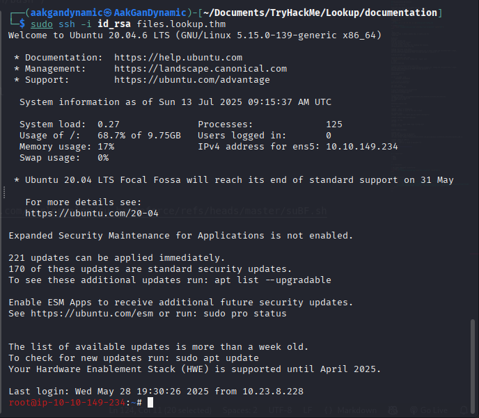 ssh -i id_rsa root@files.lookup.thm - Root flag: