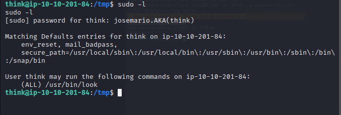 chmod +x suBF.sh ./suBF.sh -u think -w password.txt