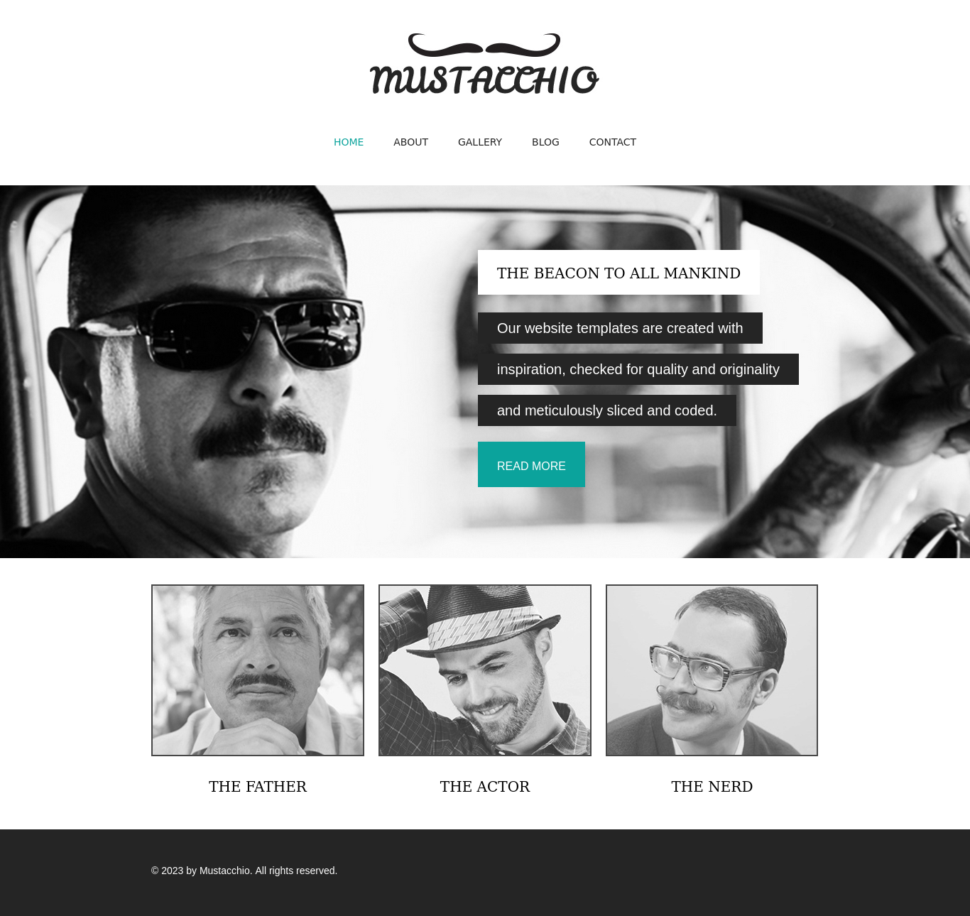 Visiting the web application on port 80, we see a homepage titled “Mustacchio | Home”. Exploring the site, we find a link to a login page on port 8765.