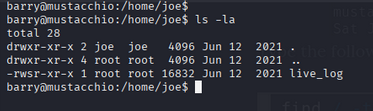 we enumerate the system for privilege escalation. we found a file named live_log in /home/joe directory.