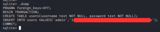 So now, we found that is an SQLite database file containing user credentials. We can use the sqlite3 command to open the database and extract the credentials:
