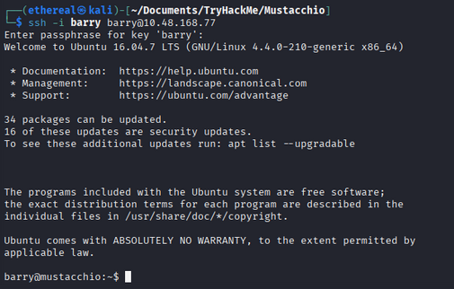 ssh -i id_rsa barry@<IP_ADDRESS>