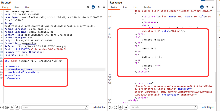 Now let’s inject the xml payload, in home page search box. we conform that the application is vulnerable to XML injection.