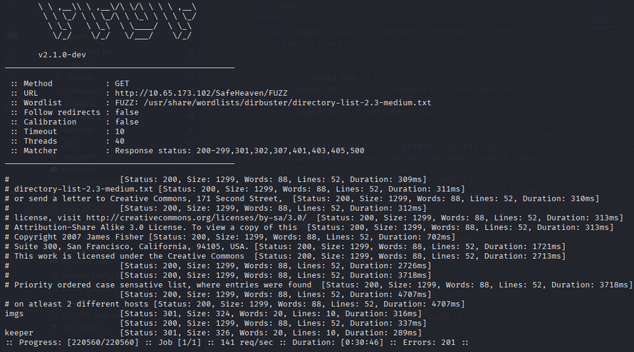 ffuf -u http://<TARGET_IP>/SafeHaven/FUZZ -w /usr/share/wordlists/dirbuster/directory-list-2.3-medium.txt