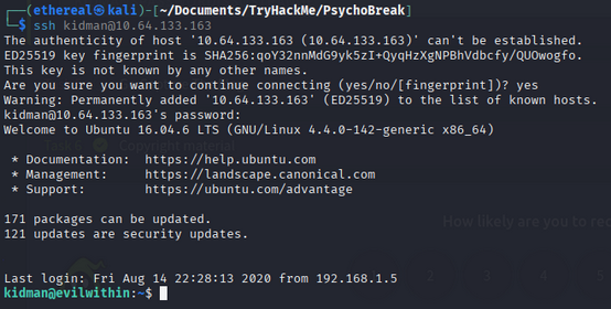 ssh <kidman>@<TARGET_IP>