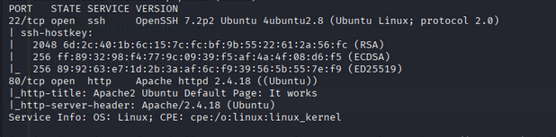 80/tcp open http Apache httpd 2.4.18 ((Ubuntu))