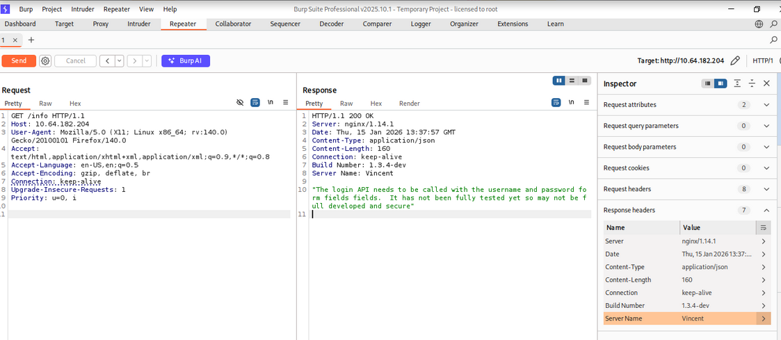 | API Analysis | HTTP response analysis | Burp Suite |