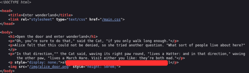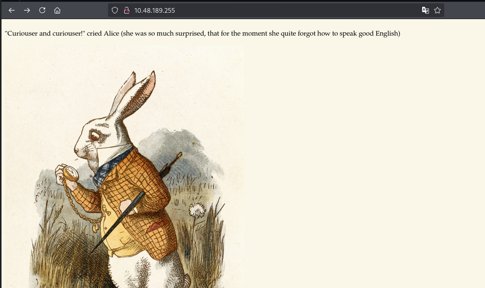 Accessing the web application on port 80, we see a simple page with the title “Follow the white rabbit.”