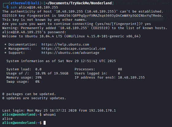 TryHackMe: Wonderland CTF — Writeup | 28 November 2025