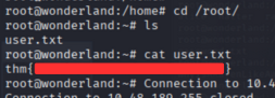 A walkthrough for the TryHackMe Wonderland room covering web enumeration, SSH access, and privilege escalation to root.