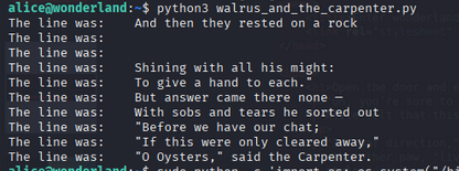 (rabbit) /usr/bin/python3.6 /home/alice/walrus_and_the_carpenter.py
